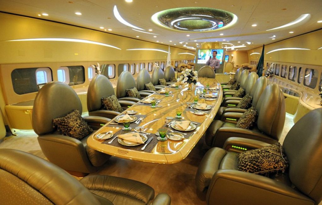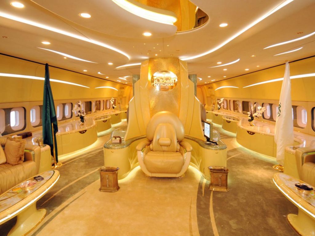 Заказ для принца Аль-Валида бин Талала из Саудовской Аравии. Купив самолет, принц сделал из него дворец! В центре разместился трон, появились две шикарные спальни и столовая на 14 человек. В качестве прислуги на борту находятся 11 стюардесс.