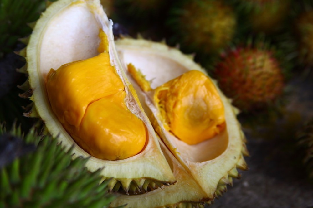 Дуриан — это один из самых неординарных фруктов на нашей планете. Его кожура источает отвратительный запах канализации, тухлого лука, испорченной рыбы и грязных носков. Из-за этого едкого амбре плод запрещено проносить в отели, автобусы и самолёты. Под колючей кожицей находится нежная, немного вязкая мякоть. Во вкусе дуриана различают нотки ананаса, банана, манго, спелой папайи и ванили. Можно попробовать во Вьетнаме, в Камбодже, Малайзии, Таиланде, на Филиппинах.