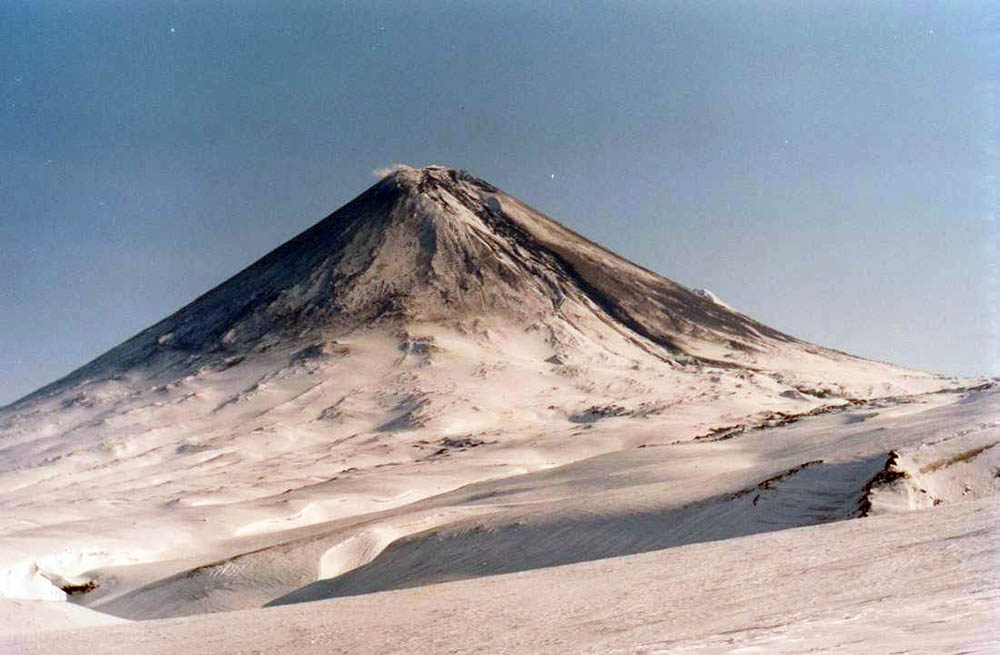 Возраст этого действующего стратовулкана — около семи тысяч лет. Ключевская сопка является самым высоким активным вулканом в Евразии. Его высота — около 4,8 километра. Последний раз вулкан извергался в апреле 2020 года.