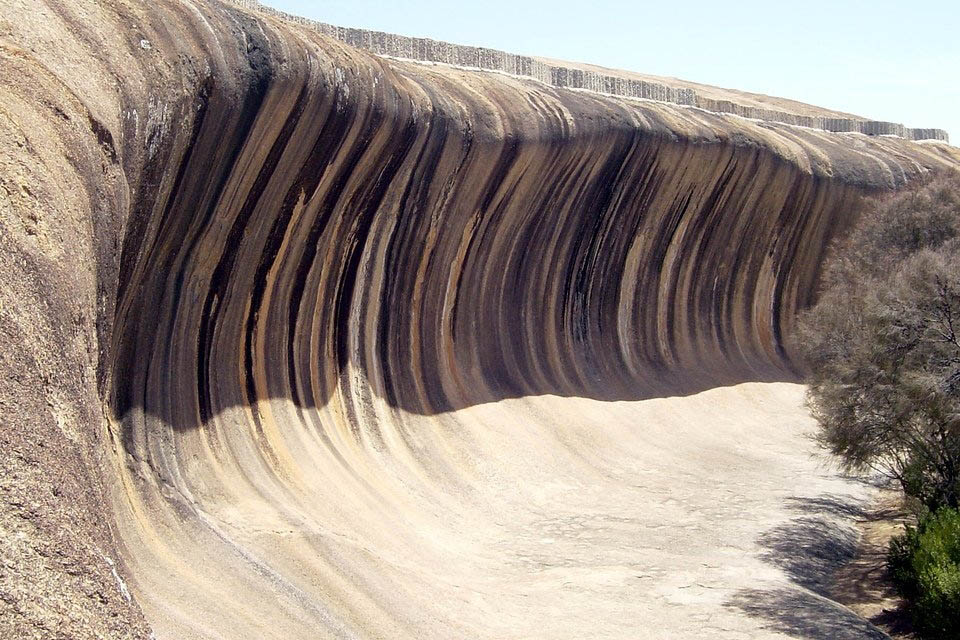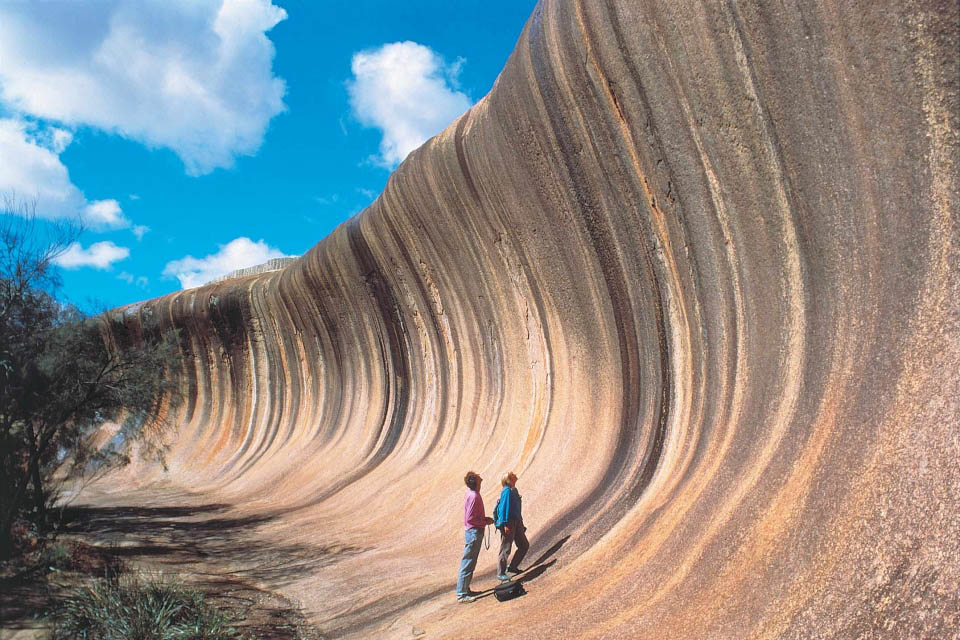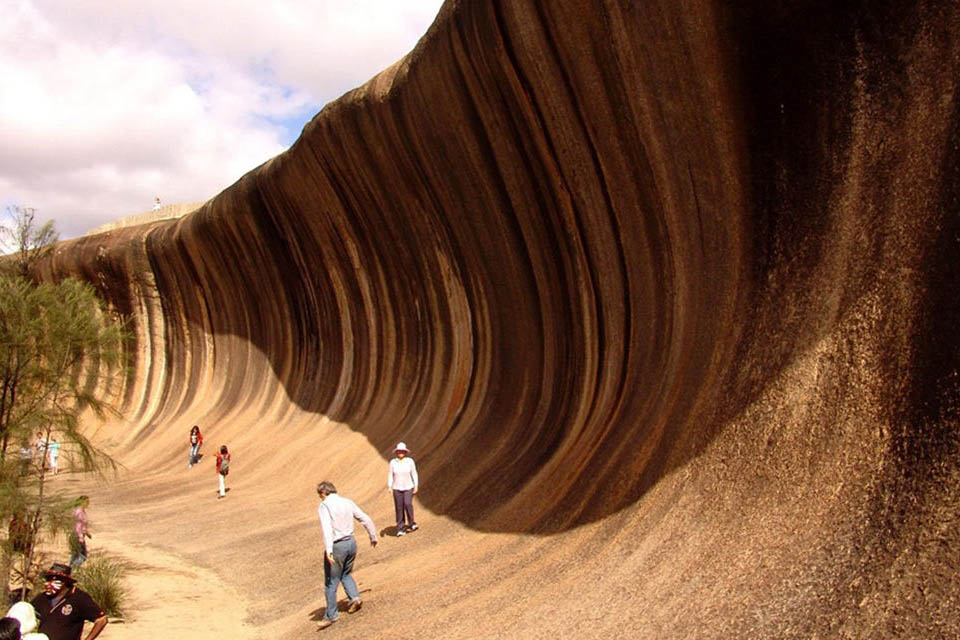 Оказывается, волны бывают каменными. Не верите? Тогда мы приглашаем вас в удивительное место, расположенное на юго-западе Австралии, в окрестностях маленького городка Хайден. Здесь можно увидеть очень реалистичную волну, застывшую в камне. Эта фантастическая достопримечательность ежегодно привлекает сюда около 140 тыс. путешественников. За причудливую форму её называют Каменной волной (Wave Rock).