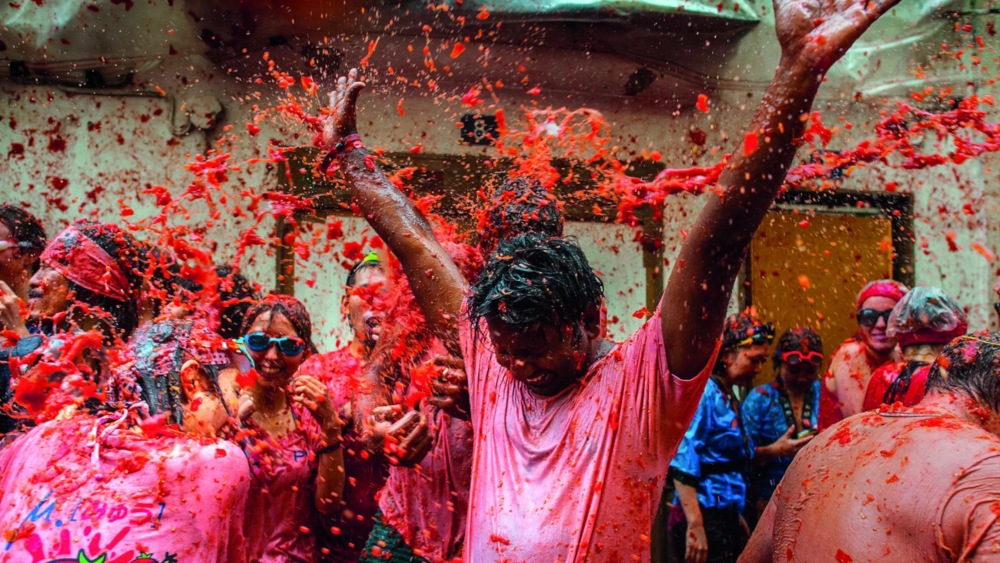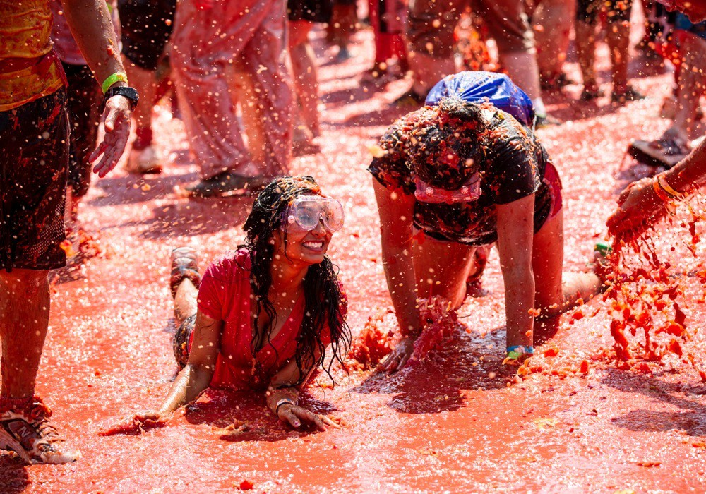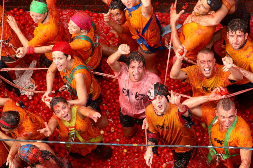 26 августаТоматина — это настоящее помидорное побоище в городе Буньоль, в котором принимают участие десятки тысяч испанцев. В день фестиваля на центральную площадь города заезжают грузовики, доверху загруженные спелыми помидорами. Самые ярые фанаты праздника, заплатившие 300 евро, едут на борту грузовиков и первыми начинают обстреливать толпу плодами. Затем 100 тонн плодов выгружают на площадь, и начинается весёлая помидорная вакханалия. За 2 часа боя его участники превращают центральную площадь в огромный томатный бассейн.