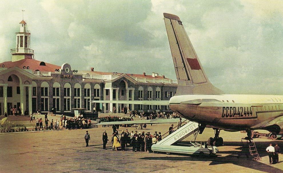 Полвека назад предполетного досмотра еще не существовало как такового, а вылетающие обычно прощались с провожающими в приемнике-накопителе, непосредственно перед выходом на летное поле. Его территория была отгорожена решетчатым забором, на котором любила виснуть и глазеть на стоящие рядом самолеты детвора.