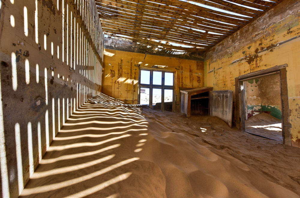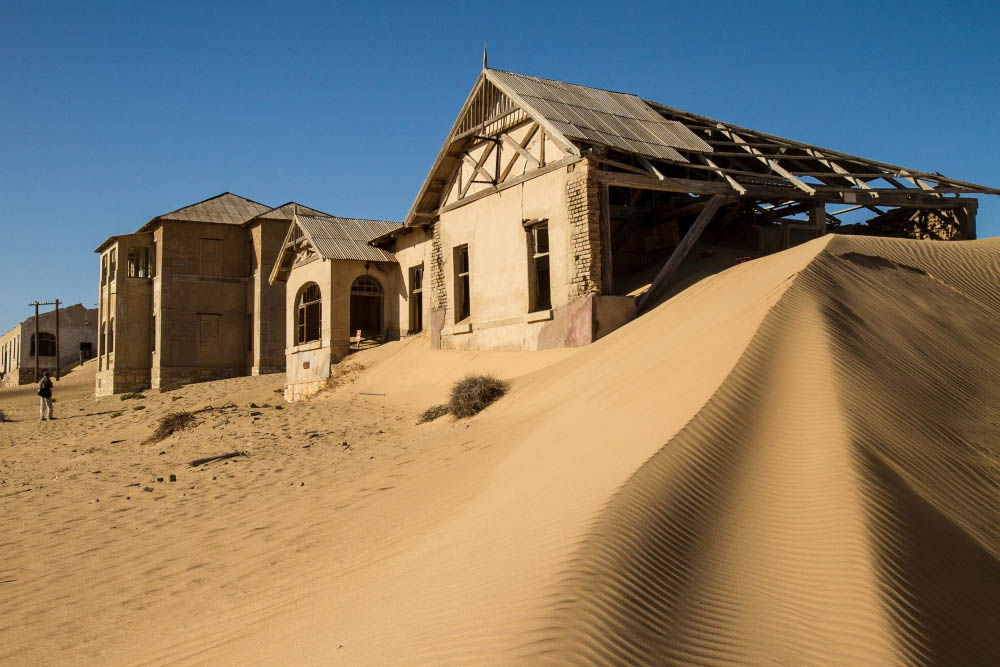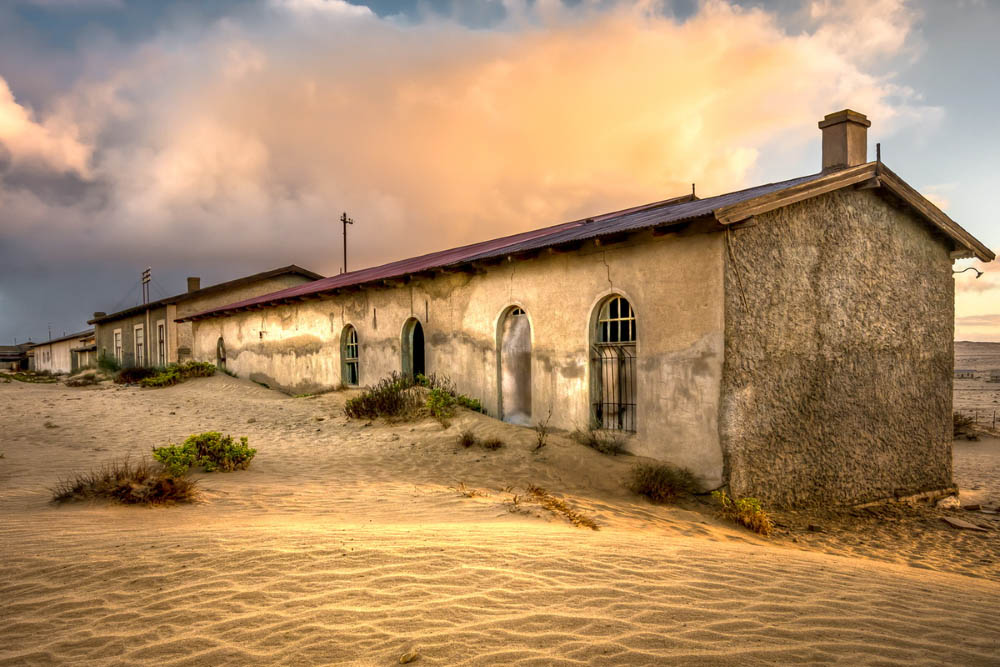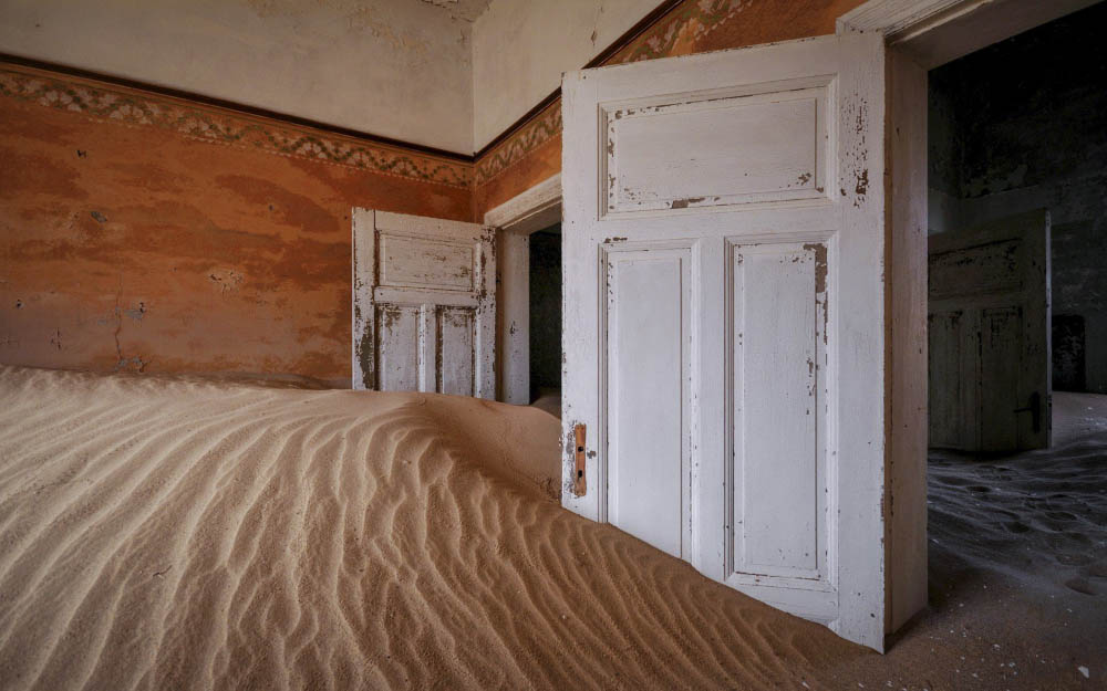 Когда-то в Намибии, на побережье океана, было открыто месторождение мелких алмазов. Вскоре рядом с месторождением вырос город с большими домами, образцовой школой, больницей и стадионом. Жители мирились с частыми песчаными бурями и проблемами с водой до тех пор, пока запас алмазов не иссяк, и они не остались без работы и средств к существованию. Тогда они стали покидать насиженные места и переезжать в другие города. В наши дни Колманскоп производит гнетущее впечатление, поскольку его дома заброшены и засыпаны песком.