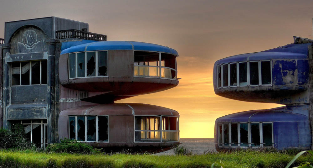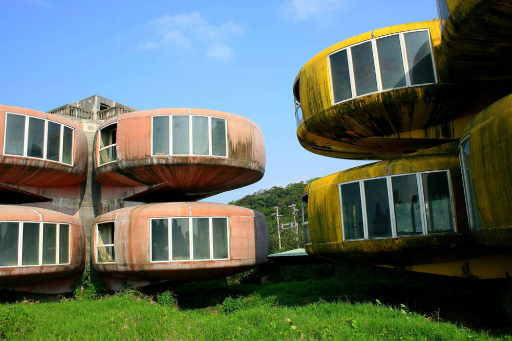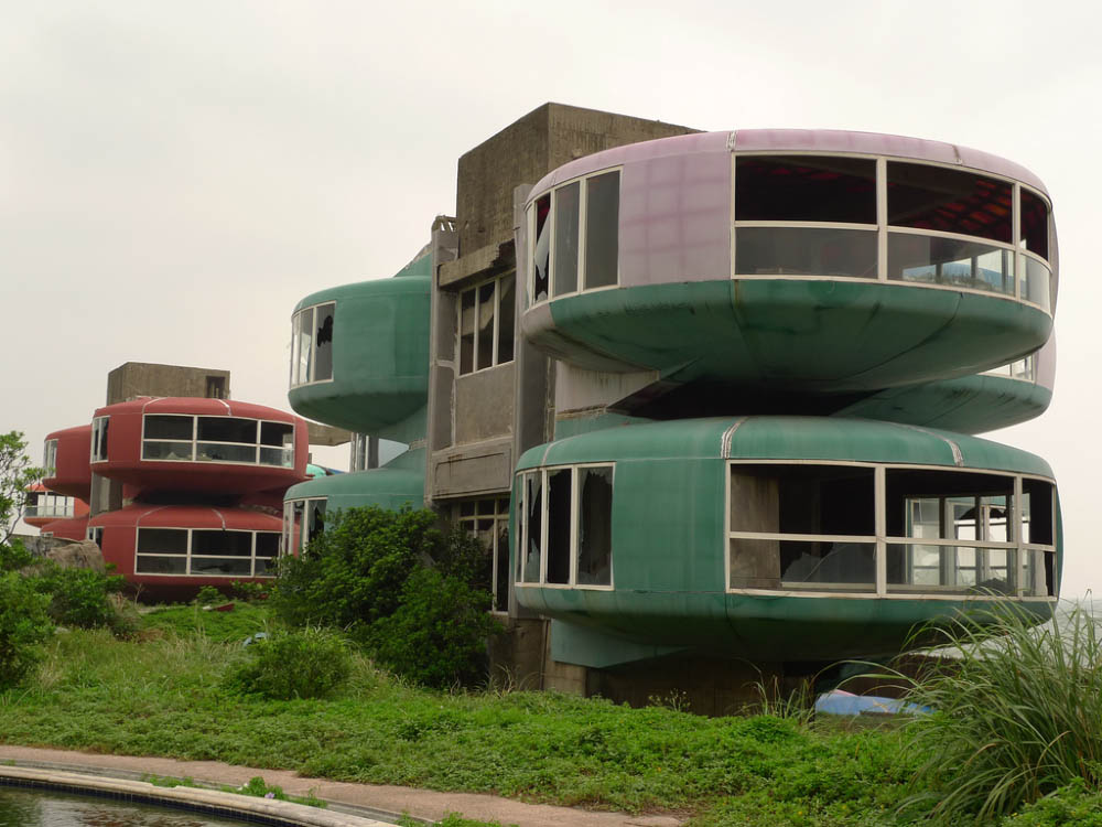 В 70-х годах прошлого века в Тайване решили построить роскошный курортный городок для богатых клиентов. Инвесторы вложили в проект строительства крупную сумму и возвели на северном побережье разноцветные домики с уютными круглыми комнатами. Но вскоре поползли слухи о том, что место, выбранное для строительства, проклято. Суеверные тайваньцы не захотели селиться на проклятом месте, курортный городок оказался невостребованным и со временем превратился в призрак. Сегодня его улицы зарастают травой, а между домов гуляет ветер.