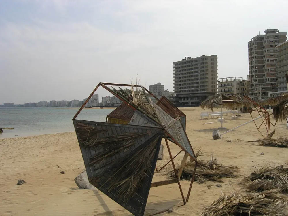 Город Фамагуста был заброшен во время войны между Турцией и Грецией. Два государства так и не поделили курортный городок, и он превратился в зону разграничения. Некогда процветающий и шумный населённый пункт опустел в один день, и сейчас здесь гуляют только ветра, а сквозь бетонные плиты прорастают деревья. Природные силы делают своё губительное дело, продолжая разрушать здания Фамагусты. Территория закрыта для посещений, но немногочисленные экстремалы, рискуя собственной жизнью, всё же посещают его пустынные улицы.
