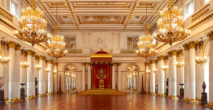 С середины XVIII века Зимний Дворец - это резиденция российских императоров. Сегодня же это месторасположение крупнейшего музея — Эрмитажа. Трехэтажное здание сохранилось с момента возведения (1757-1762 г), и реконструированы царские покои, приемные залы и даже Георгиевский тронный зал.