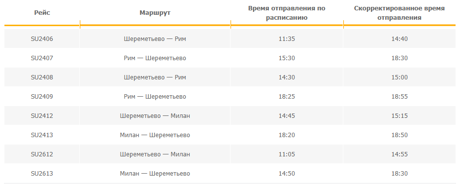 Отменены рейсыSU2418/SU2419 Шереметьево — Рим — Шереметьево
