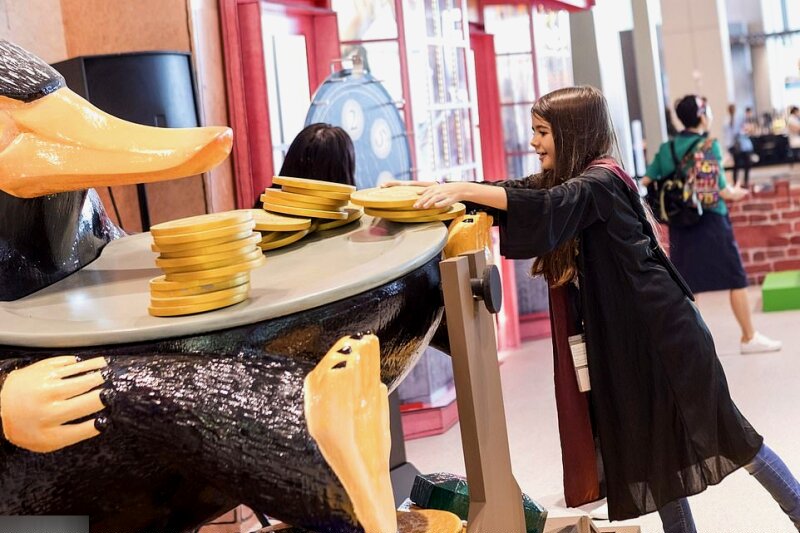 В «Магазине мадам Малкин» можно примерить чёрную мантию – точно такую же, как у учеников «Школы чародейства и мастерства Хогвартс» из «Гарри Поттера». В мантии и с волшебной палочкой в руках можно сделать на память несколько GIF-фото перед магическим зеркалом Еиналеж.