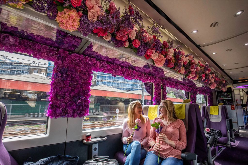 Один из вагонов Heathrow Express, курсирующих в аэропорту, украсили гортензиями, глициниями и лавандой. Всего в композиции было использовано больше 3 000 живых и искусственных цветов. Создатель инсталляции — компания Jamie Aston Flowers — потратила несколько месяцев на разработку концепта и больше четырёх часов — на реализацию.