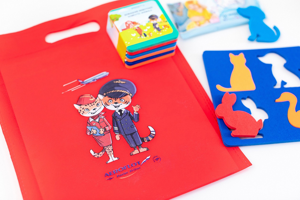 Наборы для самых маленьких пассажиров разработаны с учётом детских потребностей. Каждый комплект состоит из удобной сумки, мягкой книжки с яркими иллюстрациями, пазла с крупными деталями и упаковки влажных гипоаллергенных салфеток.