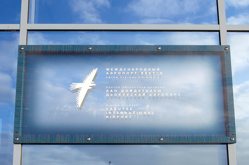 Воздушная гавань Якутска получила новое название Международный аэропорт Якутск имени Платона Ойунского. В связи с этим у аэровокзала появился и новый логотип — им стал трёхглавый орёл. По словам дизайнеров, которые разрабатывали символику, такое решение было не случайным: орёл — священная птица для местных жителей, к тому же его силуэт отдалённо напоминает самолёт с турбинами. Недалеко от аэропорта уже установили стелу-указатель с новым названием и логотипом, также заменили наружную вывеску возле входа в здание аэровокзала.