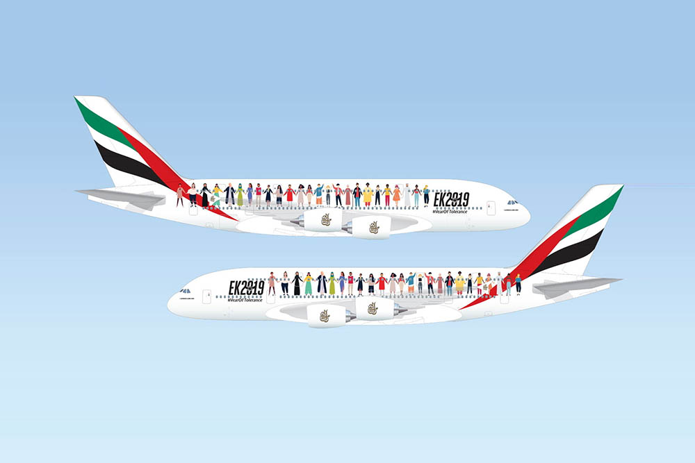 Для необычного рейса Emirates раскрасит авиалайнер в специальную ливрею, которая получила название «Год толерантности». Фюзеляж самолёта украсят изображениями людей разных национальностей, держащихся за руки. Разнообразие культур перевозчик отразит не только снаружи, но и внутри воздушного судна. Планируется, что авиакомпания соберёт на борту максимально возможное количество пассажиров разных наций.