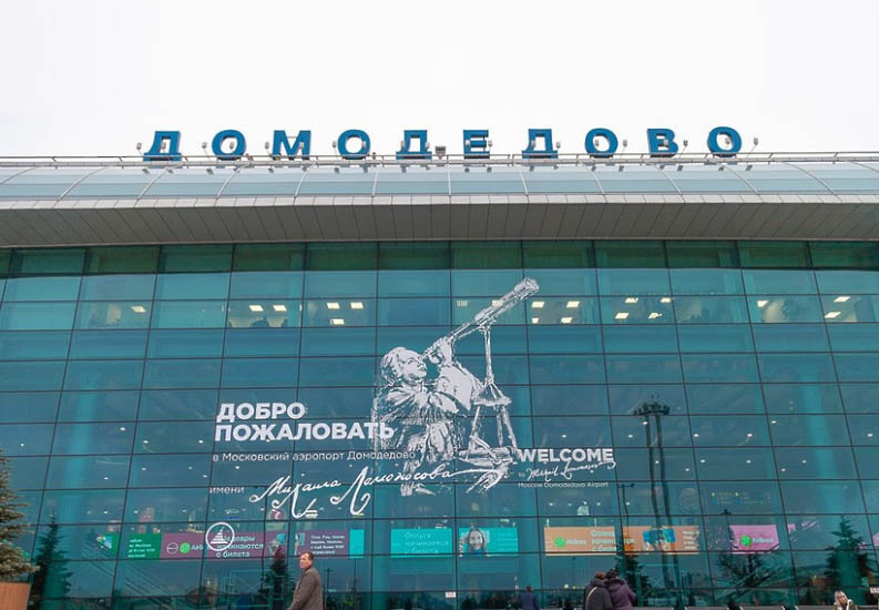 Портрет Ломоносова украсил фасад пассажирского терминала в Домодедово