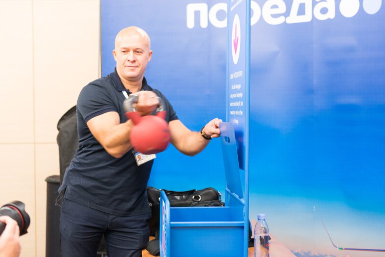 Авторы ролика решили протестировать новую багажную политику «Победы» и удостовериться на практике в словах гендиректора авиакомпании Андрея Калмыкова по провозу гири в качестве бесплатной ручной клади.