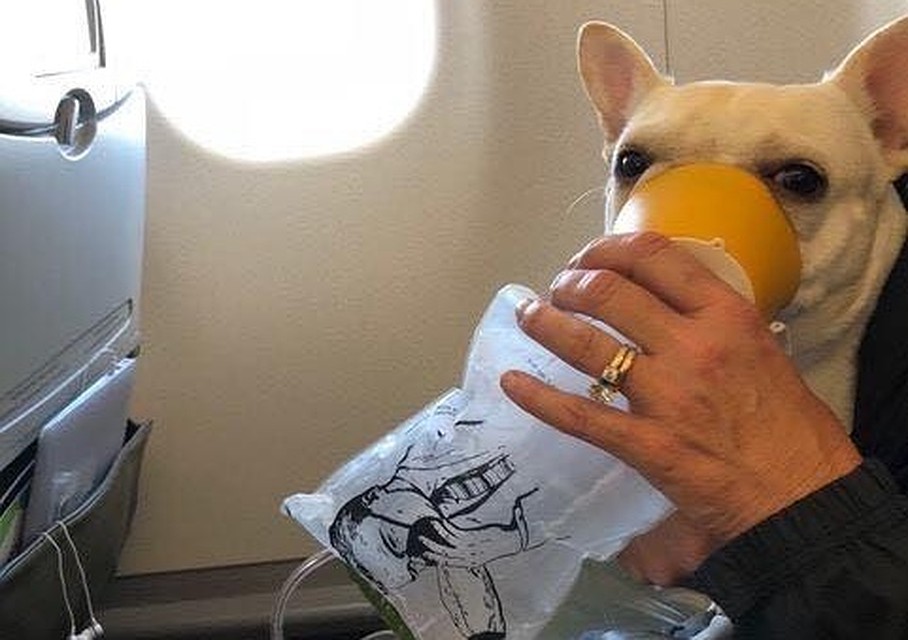 Бортпроводники авиакомпании «JetBlue» спасли задыхающегося пса на борту самолета с помощью кислородной маски. Благодарность экипажу была размещена на личной страничке счастливых хозяев питомца.