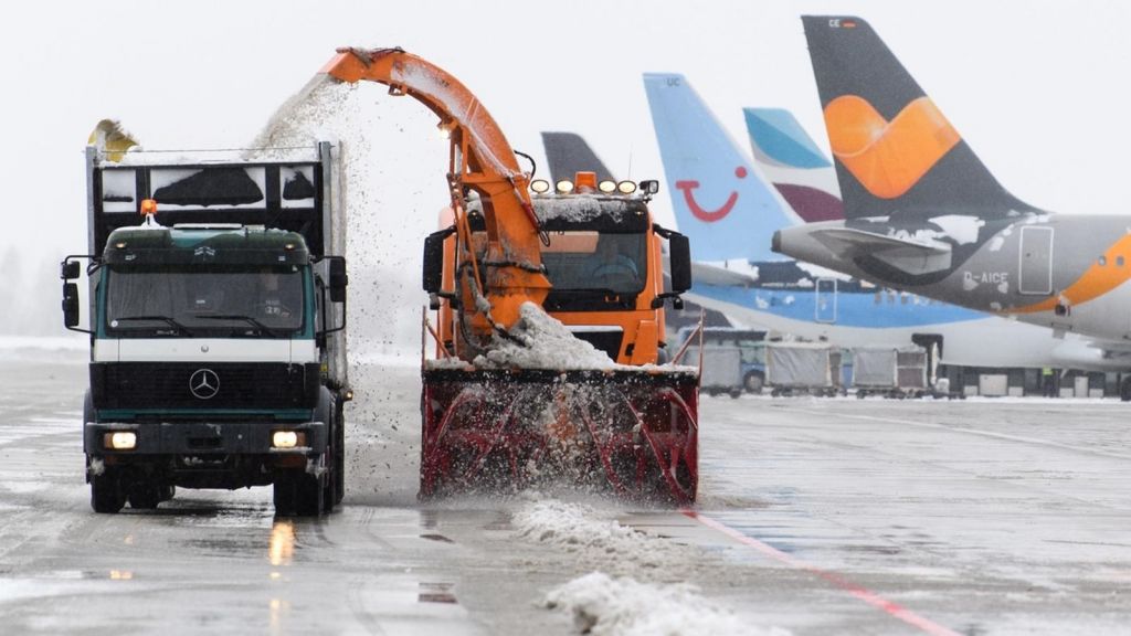 В Мюнхене с воскресенья из-за сильных снегопадов было задержано и отменено более 400 рейсов. Наземные службы воздушной гавани не справляются со стихией. Взлётные полосы замело настолько, что самолёты не могли передвигаться по полю.