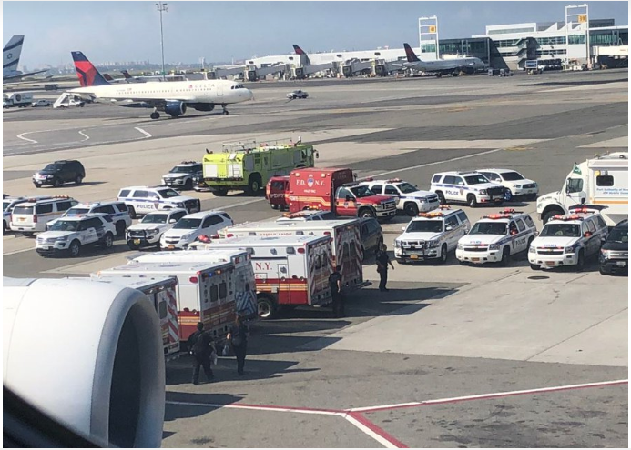 Fox News со ссылкой на представителя мэра Нью-Йорка Эрика Филлипса сообщила, что у пассажиров, которые жаловались на самочувствие, были кашель и температура около 38 градусов. Филлипс также отметил, что рейс из Дубая делал остановку в Мекке (Саудовская Аравия), где была зафиксирована вспышка гриппа.