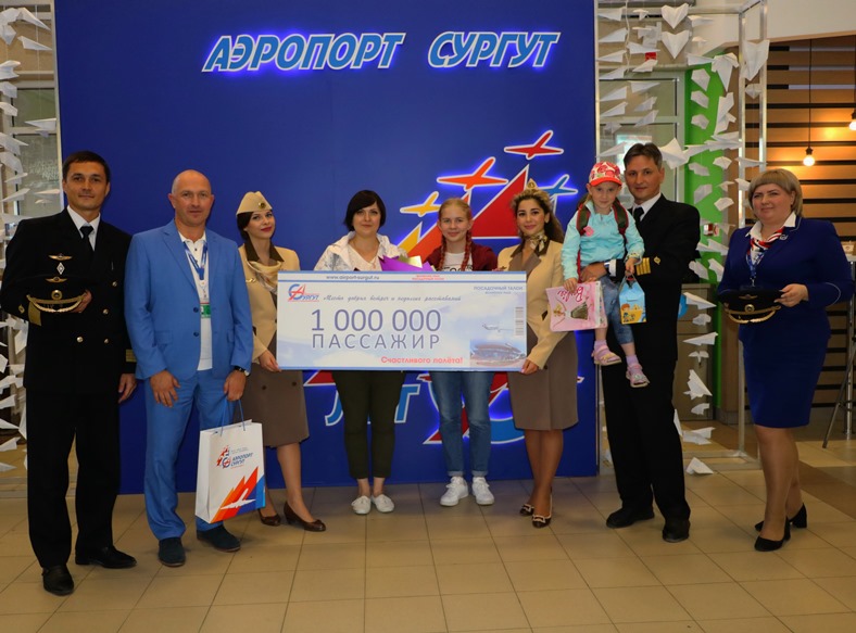 Счастливым рейсом для женщины стал перелёт Сургут-Махачкала от авиакомпании ЮТэир. Миллионной пассажирке представители аэропорта вручили свидетельство на обслуживание в зале повышенной комфортности и памятную символику.