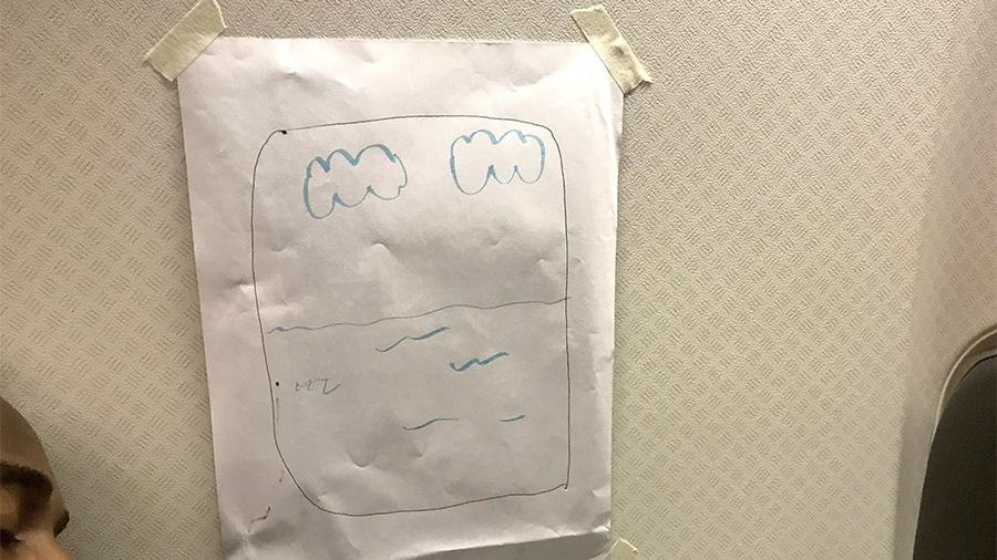 Находчивая бортпроводница выполнила желание мужчины и принесла пассажиру окно, изображенное на листе бумаги.