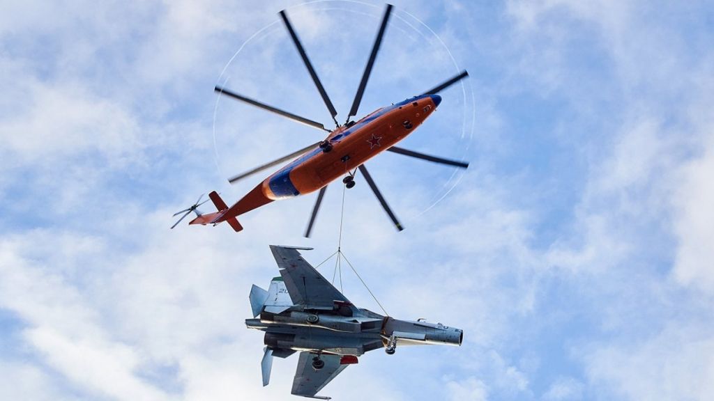По факту это была спланированная операция: истребитель Су-27 на внешней подвеске вертолета Ми-26 транспортировали летчики Западного военного округа с аэродрома Левашово в военно-исторический парк ЗВО.