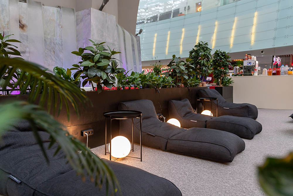 Теперь пассажиры международного терминала Внуково могут отдохнуть в зоне отдыха «Фонтан». Как следует из названия, она расположилась в фойе вылета у фонтана.