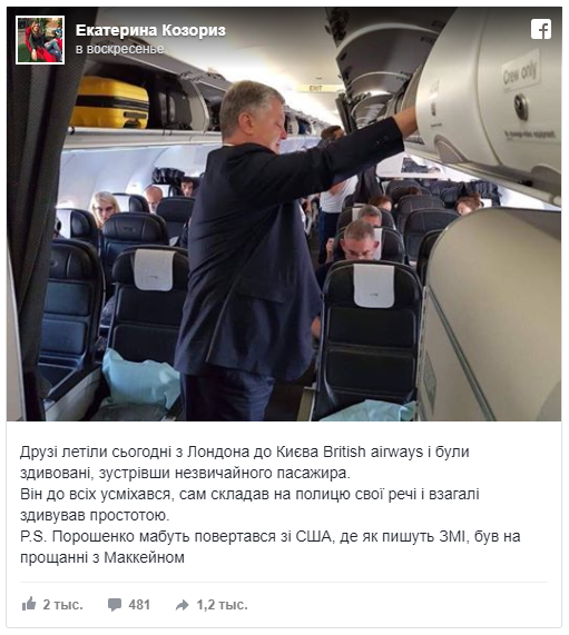 Пассажиры были в недоумении, когда увидели политика в обычном самолете. Сфотографировав факт пребывания Порошенко на борту среди пассажиров, без промедления выложили фото в соцсети.
