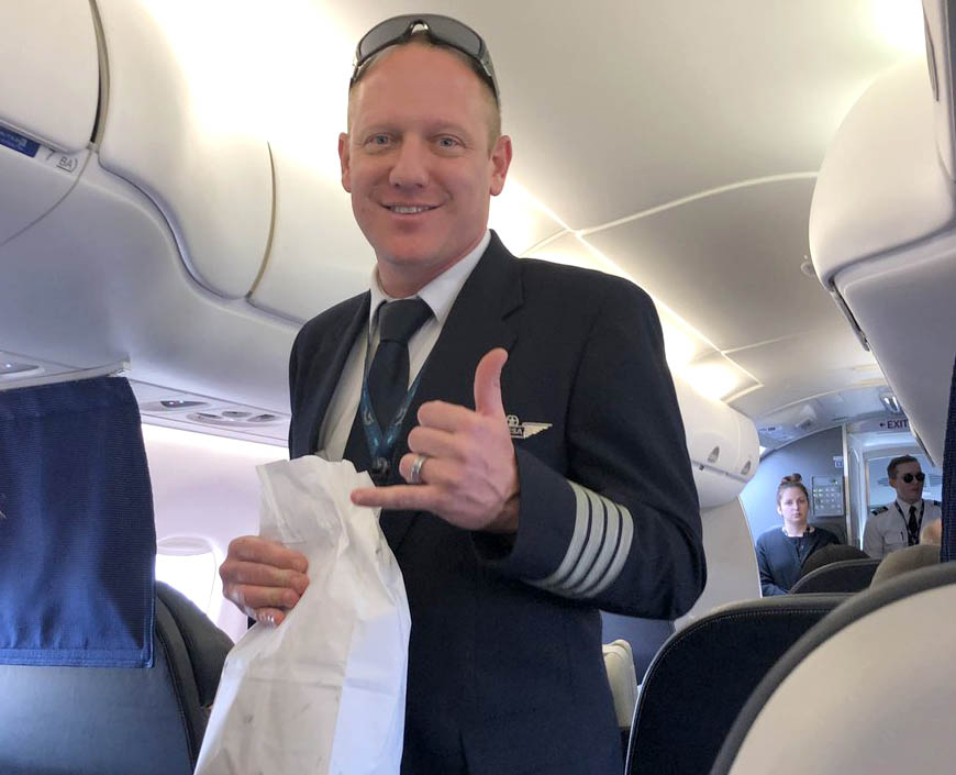 Капитан рейса Mesa Airlines, дочерней компании United Express, приложил все усилия, чтобы вернуть хорошее настроение своим пассажирам. Мэтью Хошор купил более 70 гамбургеров в Burger Bar Fat Guy’s и раздал голодным и злым людям в салоне.