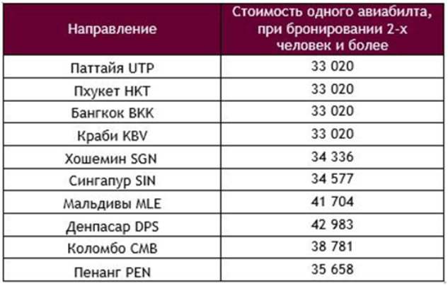 Цены указаны в рублях по курсу авиакомпании по состоянию на 23 апреля 2018 года за один билет, включая сборы при покупке от 2-х билетов в одном бронировании.Количество мест по промо тарифам ограничено.