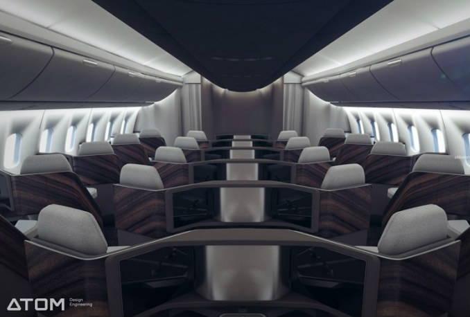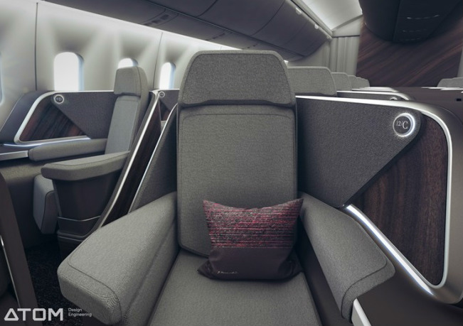 Так, отличительной особенностью нового дизайна стала диагональная раскладка пассажирских кресел в салоне бизнес-класса, что способствует повышению уровня комфортности пассажиров и вместительности салона. В новой диагональной раскладке удалось вместить 52 кресла, вместо стандартных 48 мест. Кроме того, кресла теперь раскладываются на 2,5 метра в длину, ранее можно было разложить всего лишь на 1,8 метр.