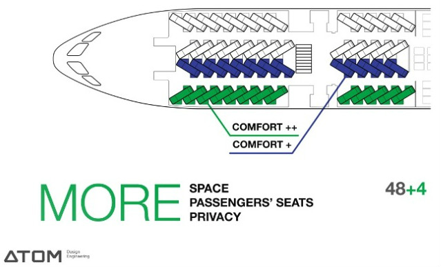 Также было увеличено расстояние между креслами — 180 см вместо 150 см, что существенно повышает комфорт пассажиров.