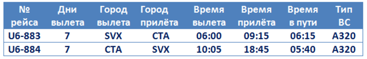 Авиакомпания «Уральские авиалинии» 28 мая 2017 года начинает выполнять рейсы из Екатеринбурга в Катанию со следующим расписанием: