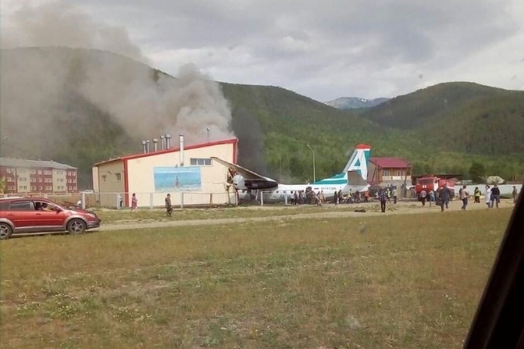 У пассажирского АН-24, вылетевшего из посёлка Нижнеангарск в Улан-Удэ, сразу после взлёта отказал один из двигателей. Пилоты приняли решение вернуться на аэродром. При приземлении самолёт выкатился за пределы ВВП, врезался в производственное здание аэропорта и загорелся.