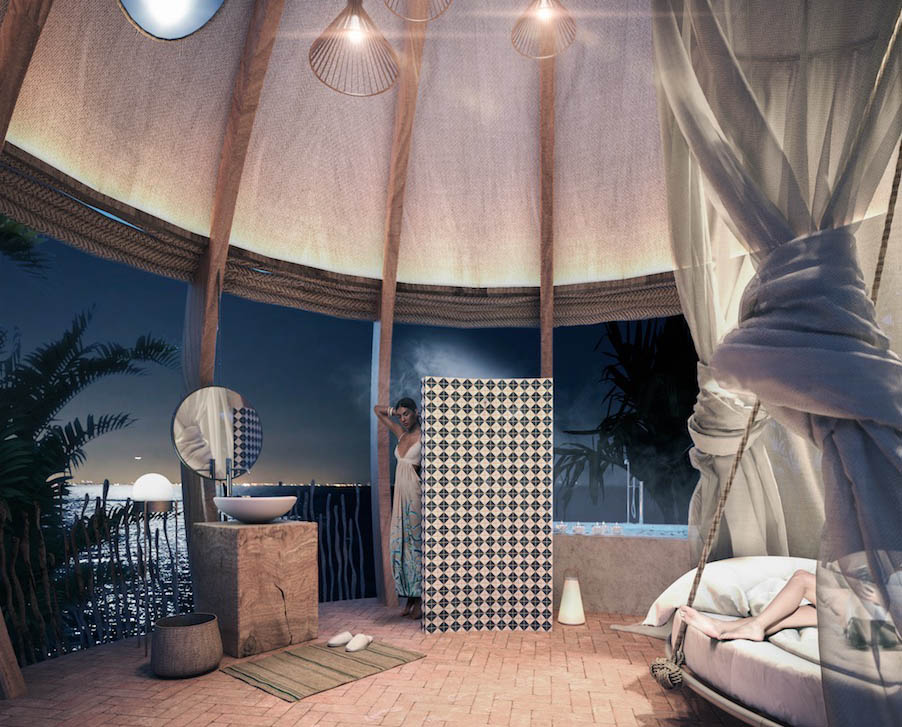 Номера отеля будут выполнены в виде коконов, имитирующих природные формы, и будут сочетать в себе элементы пляжного домика и хижины на деревьях. Гостиницу строят в самом сердце полуострова Юкатан, на берегу лагуны Нопалитос вблизи биосферного заповедника Сиан Каан, внесённого в список всемирного наследия ЮНЕСКО.