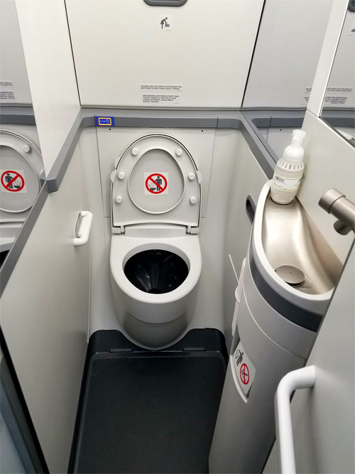 Малы не только раковины, сам туалет — шириной всего 61 см. Бортпроводники рассказали Дугу Паркеру, что два пассажира даже застряли там. Им пришлось изгибаться, чтобы выйти из тесного помещения. «После благополучного высвобождения один пассажир пошутил с другим пассажиром, что бы он тщательно подумал перед следующим посещением уборной, как он хотел бы войти туда — передом или задом, — так как внутри нет возможности развернуться», добавил один из бортпроводников.