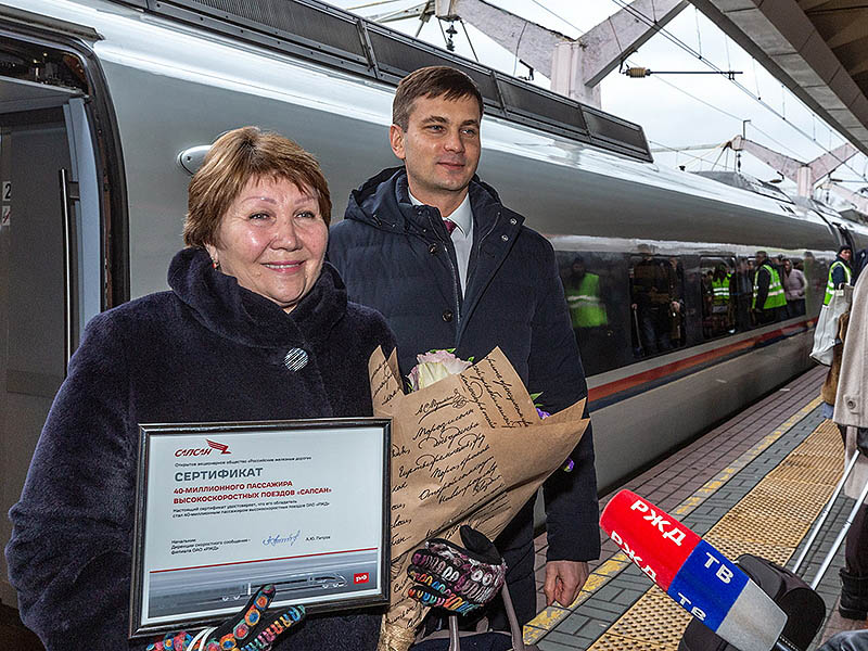 3 марта «Сапсан» обслужил 40-миллионного пассажира. Юбилейным путешественником для высокоскоростного поезда оказалась 63-летняя пенсионерка из Санкт-Петербурга, сообщает пресс-служба РЖД.