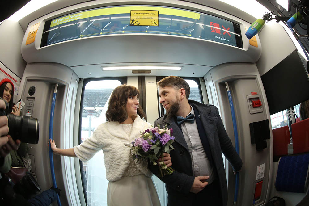 Как стало известно, в этот день признались друг другу в верности машинист Алексей Салтыков и помощник машиниста Елена Лысенко. Импровизированную церемонию бракосочетания для новобрачных в поезде «Иволга» провел популярный стилист и модный эксперт Владислав Лисовец. Алексей и Елена зашли в вагон на станции Одинцово, проехали несколько остановок вместе с обычными пассажирами (которые оказались случайными гостями праздника) и закончили свою необычную поездку на Савёловской, где пару торжественно встретил марш Мендельсона в исполнении оркестра московской филармонии. Отмечается, что молодожёнам также подготовили романтический фотосет.