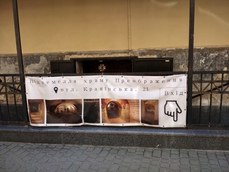 Как ясно из названия, находится подземелье под Храмом Преображения Господнего на улице Краковской, 21. Храм известный тем, что именно здесь отпевали музыканта Андрея Кузьменка. Мимо подземелья легко пройти, но этого делать не рекомендую, особенно в знойные дни. Вход в него находится с правой стороны храма, по улице Леси Украинки. И даже, если история метрополита Андрея Шептицкого не вызывает эмоционального отклика, простите за повторение, прохлада от холодных стен по цене мороженого - бесценна.