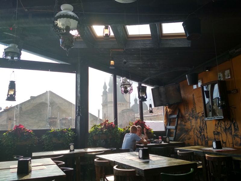 Вот кому не страшен никакой блэкаут, так это “Гасовой лямпи”. Уже по картинкам и названию можно понять, что фишка этого заведения - в керосиновой (“гасова” в пер. укр.) лампе. Считается, что именно Львов стал родиной первой керосиновой лампы. В 1853 году австрийские аптекари Игнатий Лукасевич и Ян Зех доработали масляную лампу для использования в ней керосина, который к тому моменту набрал нешуточную популярность в хозяйстве. “Гасова лямпа” в память об ушедших днях позиционирует себя ресторацией-музеем.