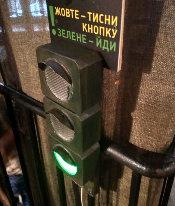 Оформлено заведение не менее оригинально. На первый этаж “музея” попасть можно просто спустившись по ступенькам. А вот на второй уже ведет винтовая лестница. Да не простая, а с самым настоящим светофором. Он подскажет, когда путь свободен, а когда лучше обождать. Для этого, если горит желтый свет, нужно нажать на кнопку и на дублирующем светофоре сверху загорится красный свет.