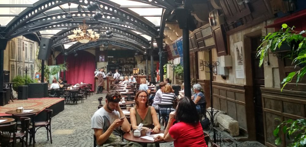 Уже ради антуража “Копальню” следует отведать каждому гостю Львова. Благо, в зубы не дают и заказывать ничего не просят. Но вид… Да, под землей это самая настоящая инсталляция на тему шахты со своей мифологией по добыче кофе. Как добывали кирками уголь, так в рамках здешней мифологии добывают и кофе. Больше всего антураж заведения вызывает ассоциации с клипом Sonne группы Rammstein. Здесь есть и вагонетки, и пути, и записанные звуки как кто-то неподалеку орудует киркой. Даже время от времени пускают пар, как на каком-то рок-концерте. И всё это в полутьме, которую персонал назвал “атмосферой вечного вечера”.