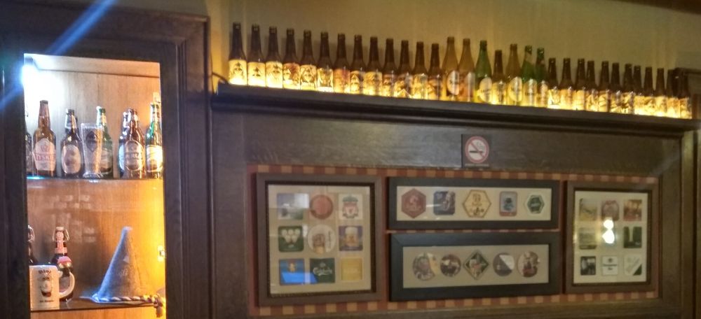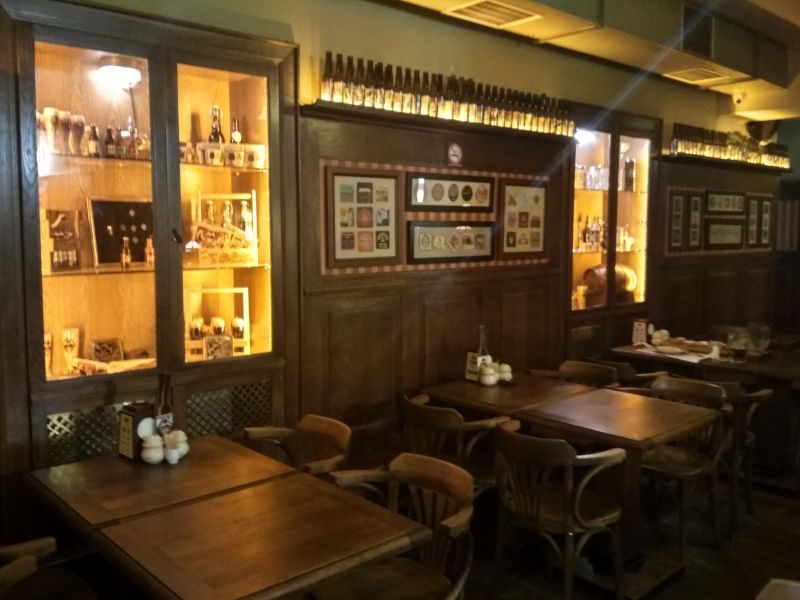 Интерьер и оформление заведения наиболее полно отсылают ко всем стереотипам того, как должен выглядеть паб на стыке XIX-XX веков. Это коллекция пивных бутылок и этикеток на стенах. Это деревянные столики и стульчики, которые будто вынесли со съемок фильма “Банды Нью-Йорка”. Это два.