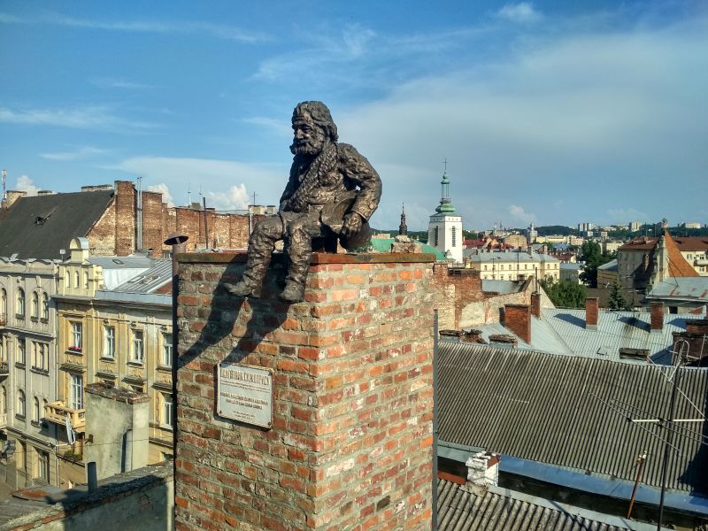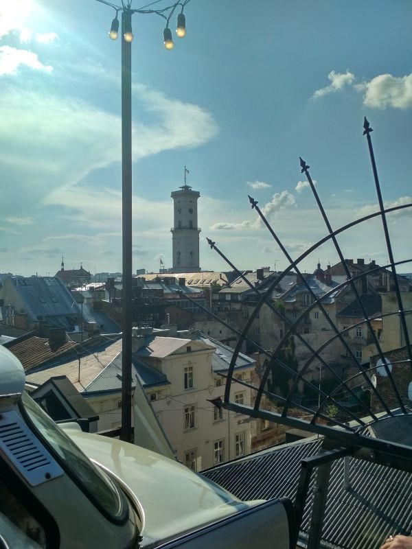 Зато есть путь на крышу и рядом со стареньким “Трабантом” (единственная машина Львова на крыше) все ещё можно попытать удачу и бросить монетку в шляпу трубочиста, который (пока ещё) сидит на крыше. Или полюбоваться красивым видом на ратушу. Жаль только, что совсем скоро и этот уголок закроют. Закроют, но не забудут. Как и любую другую легенду.