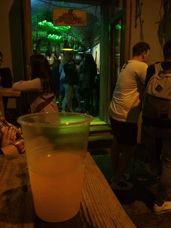 А вот заказанная сангрия (к слову, в бумажном стаканчике) пришлась на “ура!” в прохладный львовский вечер. Бонусом в копилку плюсов шел адекватный саунд от Guano Apes, Linkin Park и всех знаковых рок-групп рубежа '90-х и '00-х. Для разговоров, быть может, так себе, но для атмосферы бара на вынос - самое то.