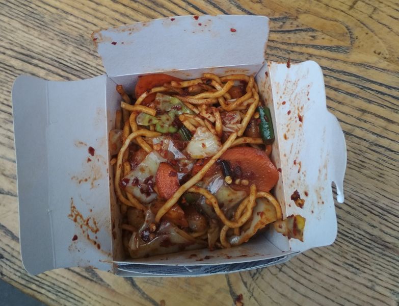 И вот здесь, мой “мудрый” совет. Если вы, как я, считаете себя крутым и от домашней горчицы испытываете только слезы радости, то знайте, соус “тайский чили” не для вас. Собственно, я не знаю, для кого он. До этого момента я искренне верил в собственную непобедимость перед любыми острыми обстоятельствами кухни и глотал острые блюда с той же легкостью, как циркачи глотают шпаги. Но я ошибался и ошибка эта стоила не просто слез, не просто красных щек и выступившего пота. Это было такая неописуемая гамма эмоций, которая растянула трапезу на несколько часов. Пришлось ждать, пока “wok-бокс” остынет, затем пока закончится. Если кратко, то потраченные 80 гривен запомнились так сильно, словно жизнь поделилась на “до” и “после” трапезы. Но главное испытание ждало в поезде, где ошибка с выбором блюда раскрылась так полно, как это в принципе возможно. Словом, не повторяйте моей глупости. Блюда в этом заведении достаточно остры и без "тайского чили".