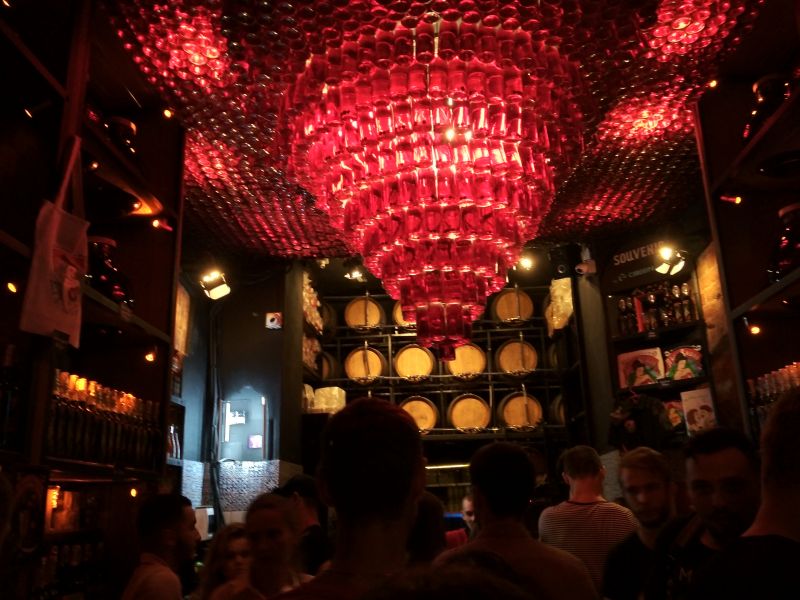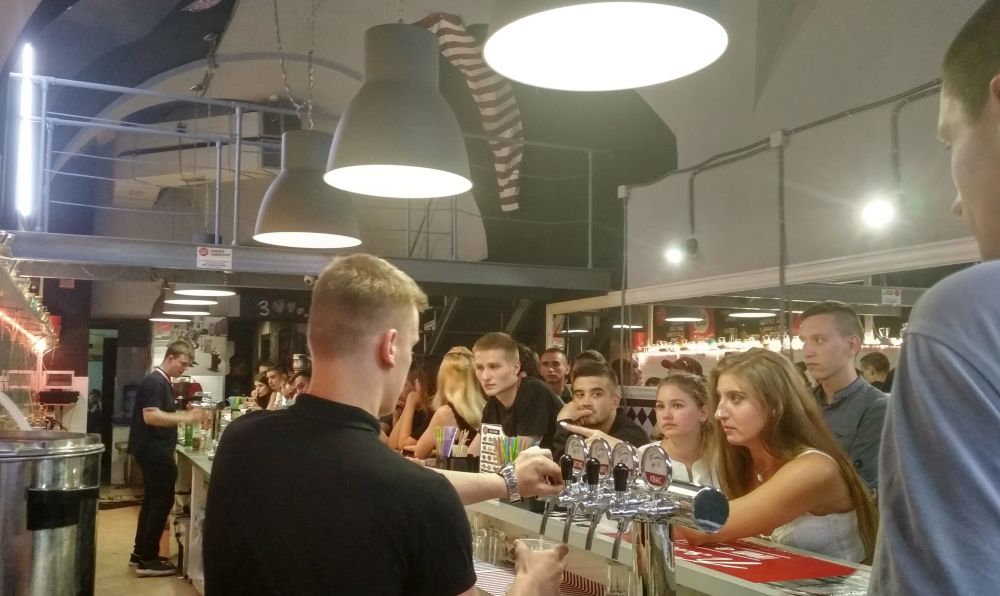 Заведение представляет собой контактную длинную стойку, стульчаки и пару барменов, второпях разливающих пиво, шоты и коктейли. Зашедший следом голландец Николас крайне обрадовался бросовым ценам, но огорчился тому, что наше светлое пиво оказалось еще и теплым. Да и аппаратура регулярно пенило пиво, что затрудняло барменам нормально работать. После 11 вечера мы ждали возможность заказать, без малого, 10 минут.