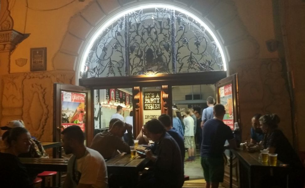 На улице, правда, всего пара столиков и внутри не больше, так что стоячие места с бокалом в руках - явление повседневное. Возвращать ли бокал, всецело дилемма для вашей совести. Тем более, что его можно легально приобрести за 68 гривен.