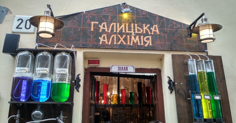 Как уже упоминал в прошлом материале, расположено заведение по тому же адресу, что и “Гасова лямпа”. Отличный вариант для тех, кому наливки здесь и сейчас, а шикарный набор керосиновых ламп то на “как-нибудь потом”. Заведение - приятный пример, когда подача важнее содержимого. Вместо привычных наливок здесь “зелья”. Казалось бы, что тут такого? Но вот именно в этом фишка: вместо клубники, вишни, мяты и фруктов всех сортов, здесь есть зелья “бессмертия”, “невидимки”, “разврата” и прочих “ведьмовских штучек”.