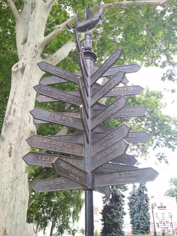 Чтобы не заблудиться, обязательно посетите вот этот указатель расстояний, что на ул. Пушкинская, 1. Может, именно на нем будет указан путь к вашему родному городу.