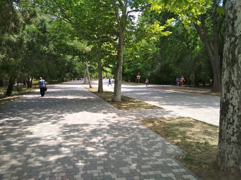 На самом деле, парк очень красиво оформлен, и даже просто гуляя мимо зелени или проходя по дорожкам, мысленно ощущаешь как приближаешься к морю. Или это все магия расставленных знаков, которые указывают сколько и куда осталось метров.
