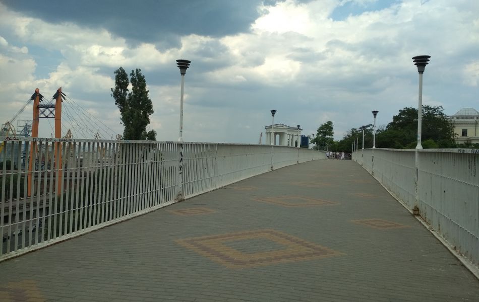 По сути, пешеходный мост расположен над военным спуском. В теории, приятное место с хорошим видом на порт.
